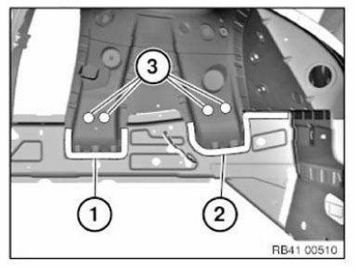 Deviating from the left side of the vehicle: Due to the ground connection (1), the new part will be welded in area (2).
